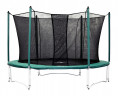 - Специальная мягкая и пружинистая сеть из полиэстера высотой 270 см. Защитная сеть крепится между прыжковым полотном и защитным матом, что исключает случайное попадание пользователя на мат, раму и пружины. Верх защитной сети оформлен фиберглассовыми дугами.