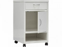 В верхней части тумбы располжен выдвижной ящик на тихих направлябщих. В нижней части отделение с полкой закрывает распашная дверка оборудованная ригельным замком. Тумбочка установлена на колеса диаметром 50 мм.
